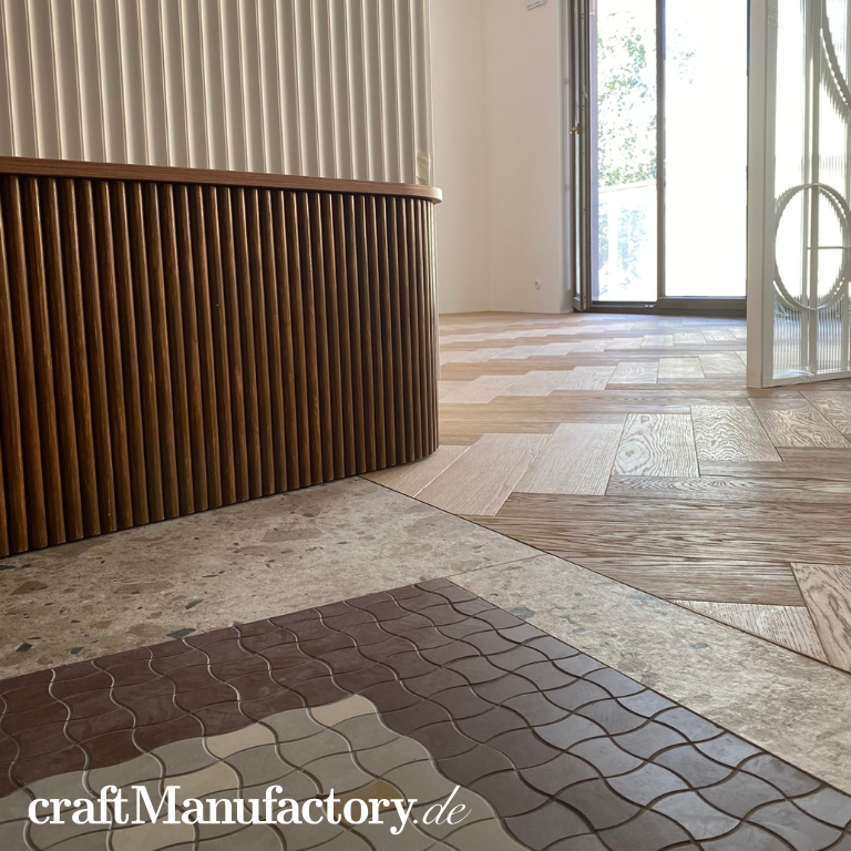 Glasierte Keramikfliesen von craftManufactory – handgefertigt, lebendig und charaktervoll. Jede Fliese ein Unikat – für Wände mit Seele. Unser Favorit: Rustikale Craftfliesen.