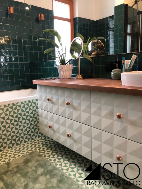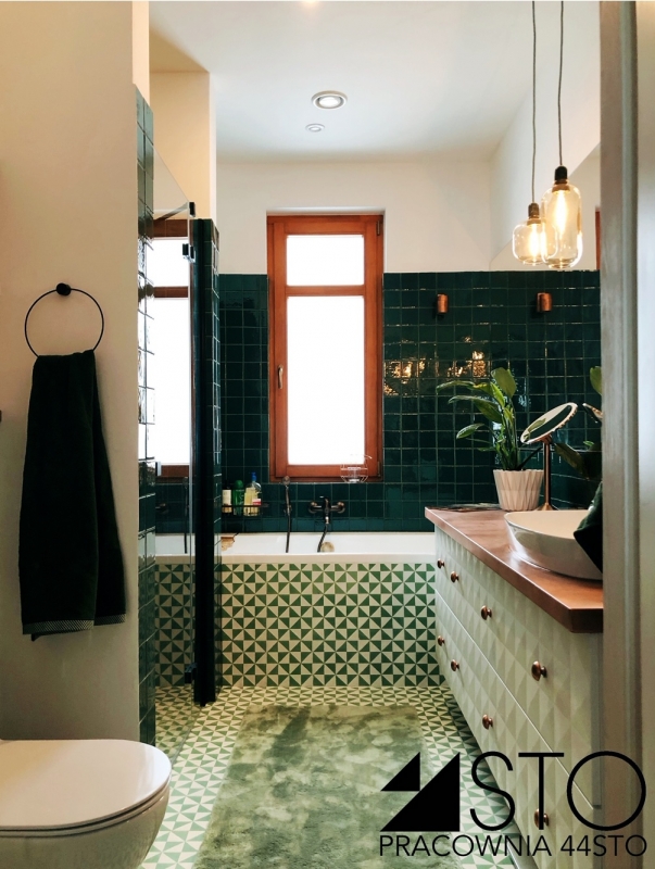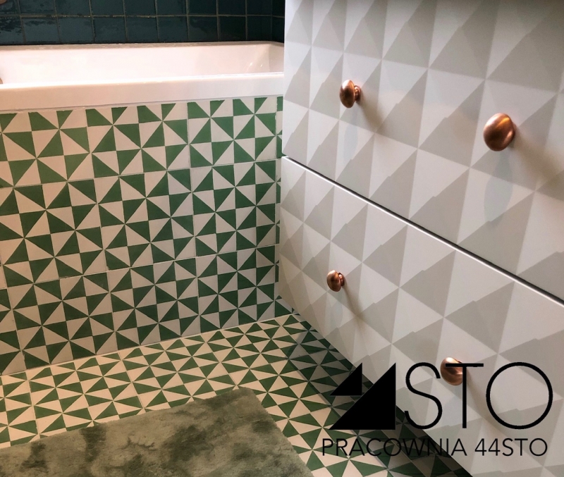 Nowoczesna łazienka w zieleniach - płytki cementowe 241, płytki zieleń turkusowa