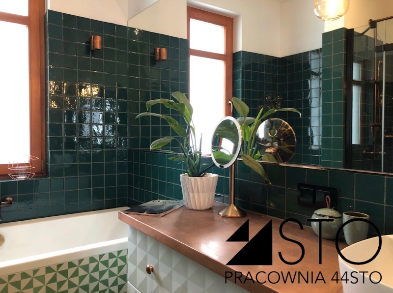 Łazienka w zieleniach - płytki cementowe 241, płytki rustykalne zieleń turkusowa
