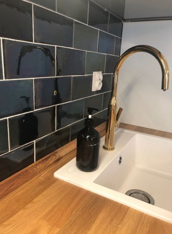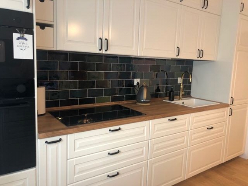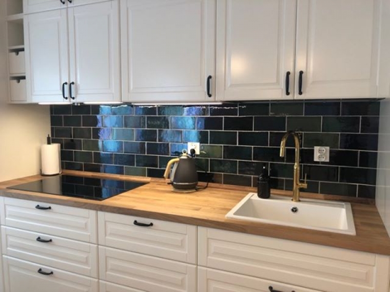 Płytki backsplash zieleń butelkowa kuchnia