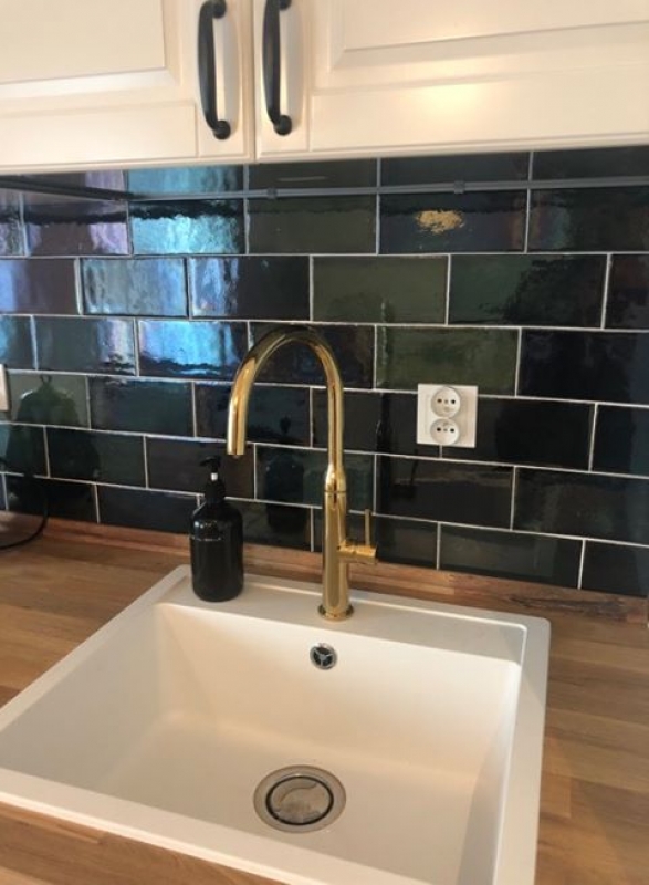 Płytki zieleń butelkowa Metro w kuchni