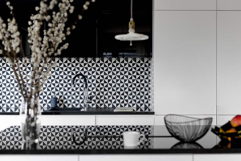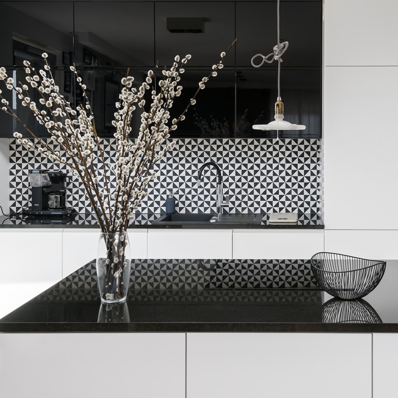 Płytki cementowe 243 i minimalistyczna kuchnia