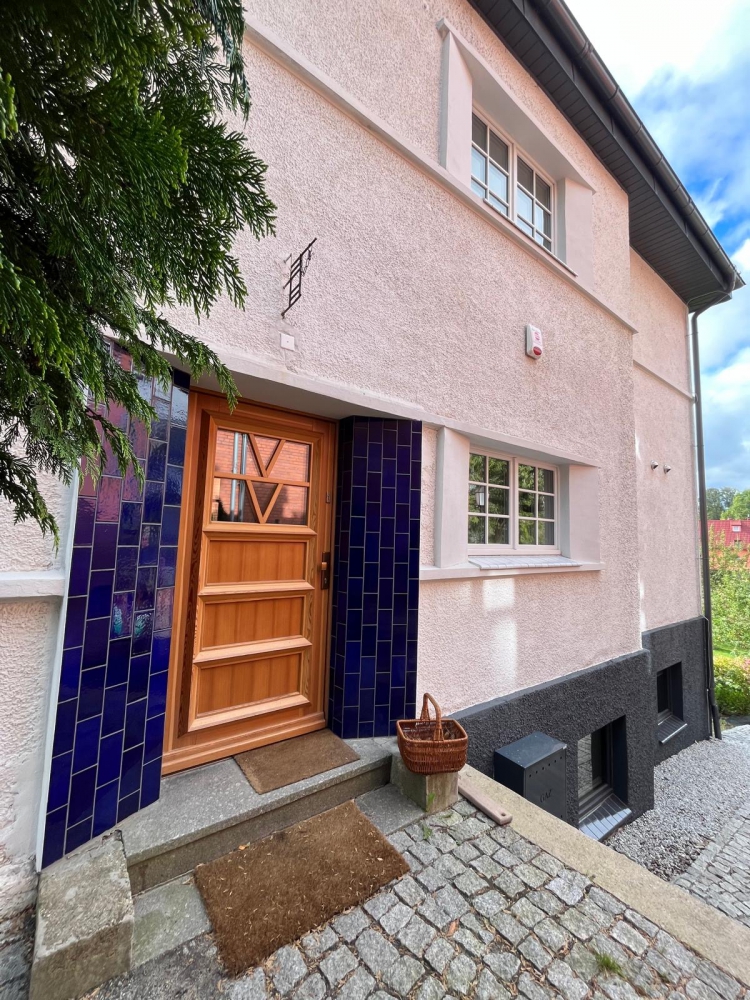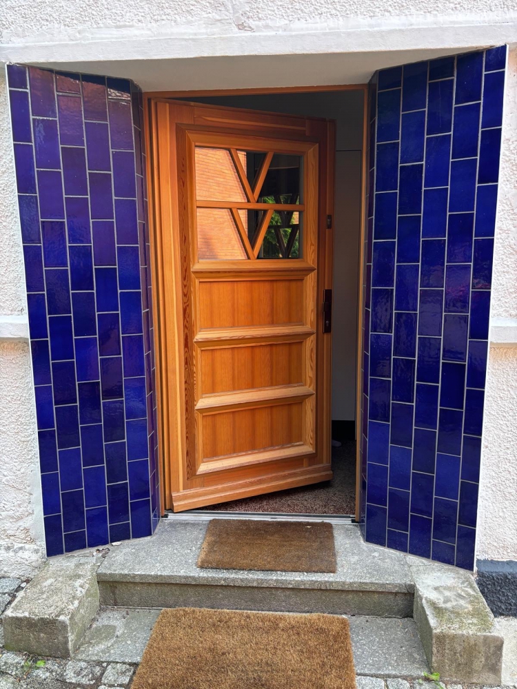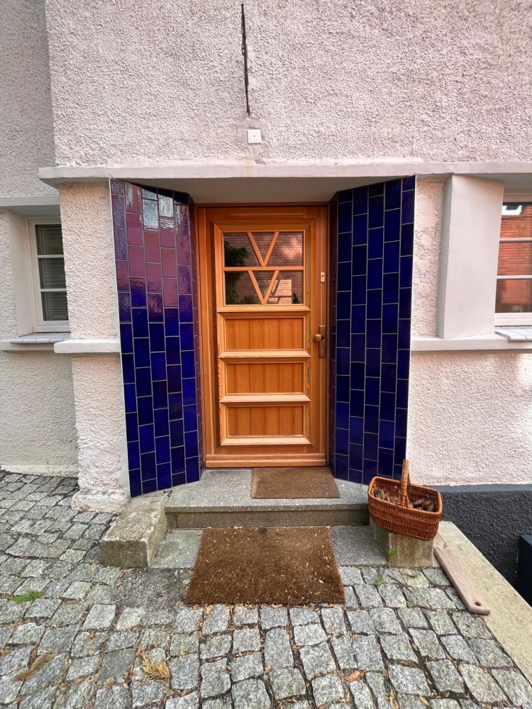 Kobaltowe Płytki METRO na elewacji