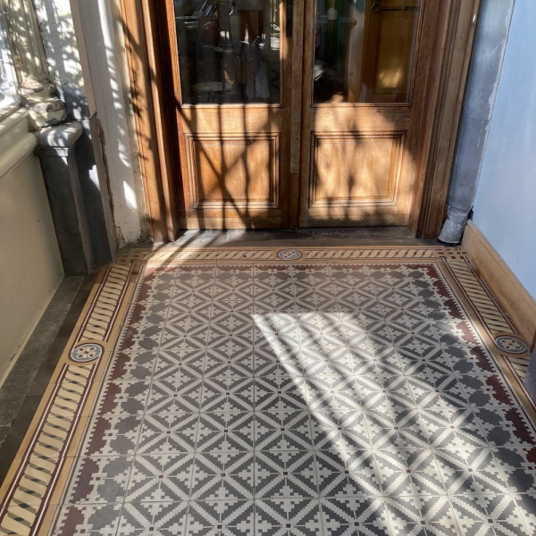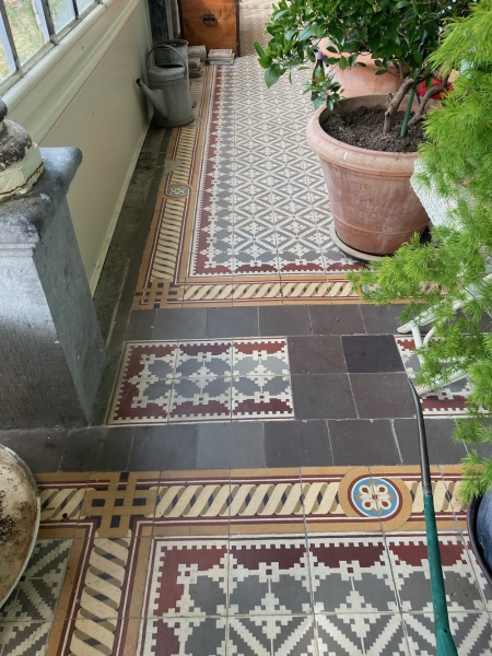 Historyczne płytki cementowe - bordiura po renowacji