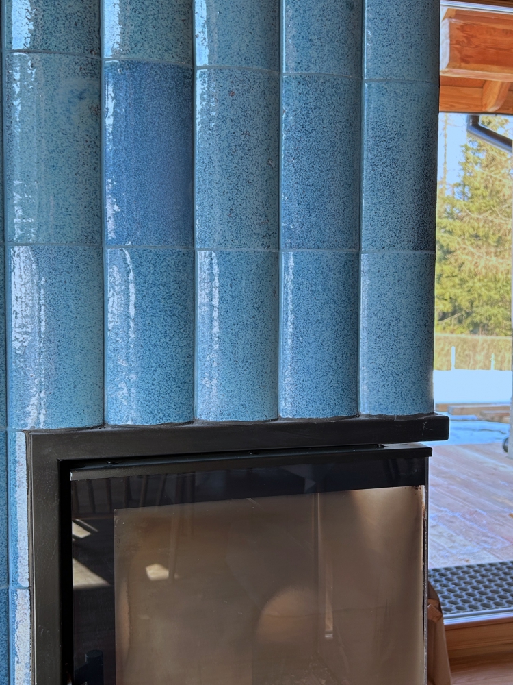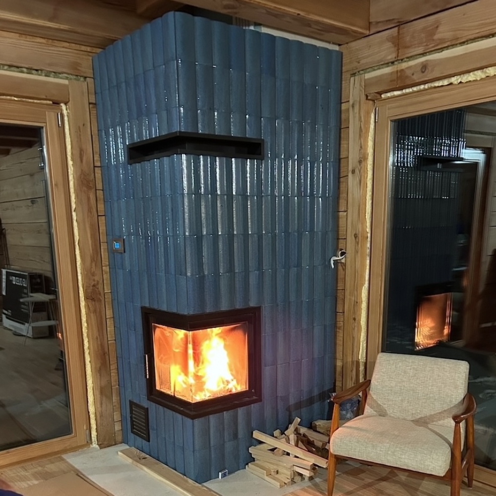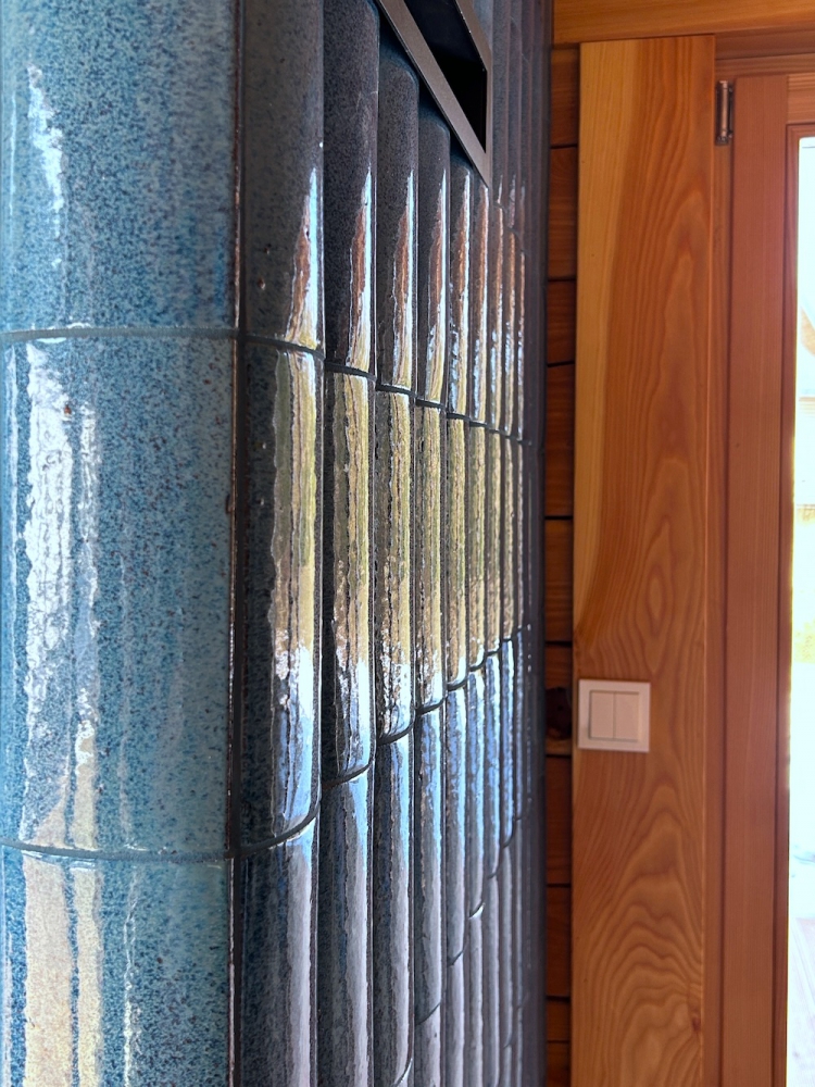 Für diese Kaminverkleidung kam unser halbrundes, glasiertes Fassadenformteil R1 in einem tiefen Meeresblau zum Einsatz. Die abgerundete Form erzeugt ein lebendiges 3D‑Spiel aus Licht und Schatten, während die Glasur das Licht elegant reflektiert und dem Kamin eine frische, edle Note verleiht. So entsteht ein Blickfang, der moderne Klarheit mit handwerklichem Charakter verbindet.