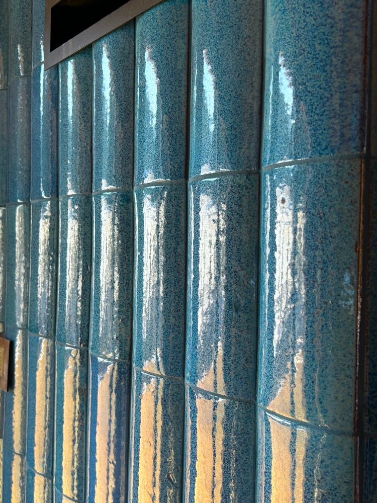 Glasierte Fassadenformteil R1 – Kaminverkleidung in Meeresblau