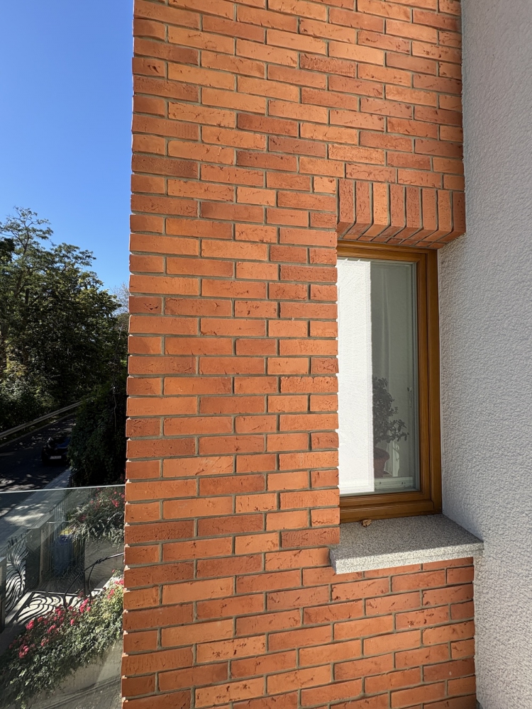 Die Klinkerriemchen Altmauer haben einem nach dem Krieg erbauten Haus in Sopot (Polen) seinen historischen Charme zurückgegeben. Die Fassade erhielt eine authentische, wertige Anmutung – inspiriert von handgeformten Ziegeln. Genau diesen Effekt bieten hochwertige Ziegelriemchen für die Fassade: natürliche Optik, die wie Vollziegel wirkt, kombiniert mit praktischen Vorteilen. Dank der verwendeten Klinkerriemchen/Backsteinriemchen wurde nicht nur die Ästhetik deutlich aufgewertet, sondern auch die Funktionalität: zusätzliche Wärmedämmung und eine unkomplizierte Montage. Auch nach rund sieben Jahren zeigt die Fassade ein tadelloses Bild – ohne Ausblühungen, Verfärbungen oder Wasserläufe. Besonders hervorzuheben sind die Eckriemchen, die optisch einen massiven Ziegelmauerverband nachbilden, sowie die sorgfältig ausgeführten Metalldetails, die dem Ganzen Eleganz und Ausdruck verleihen. Diese Realisierung zeigt, wie Klinkerriemchen für die Außenfassade – im spezifischen Klinkerriemchen Altmauer – Ästhetik mit Langlebigkeit vereinen. Eine Lösung, die das Auge erfreut und zugleich baulich überzeugt.