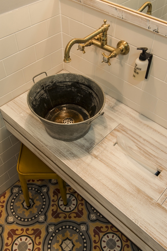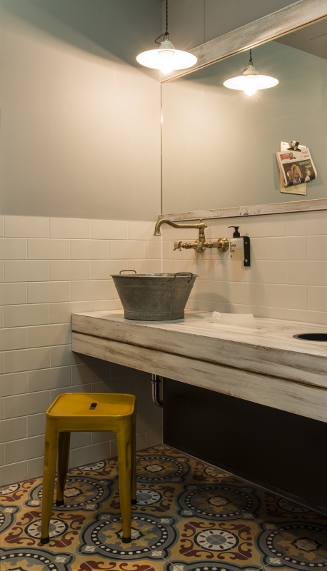 designerska łazienka, podłoga to płytki cementowe 501 z Articima