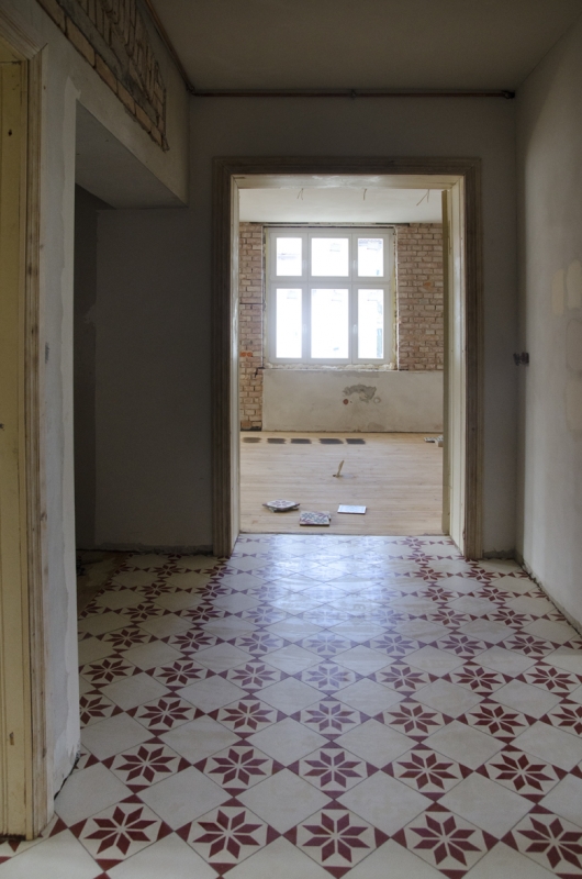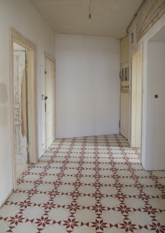 Korytarz i płytki cementowe w starej kamienicy
