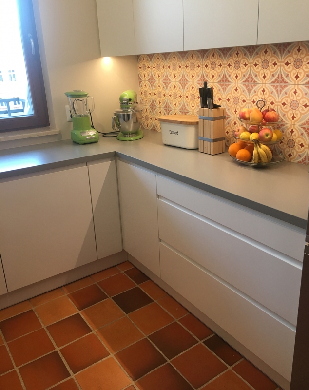 Płytki cementowe 4800 ścienne w kuchni i terakota cotto 20x20