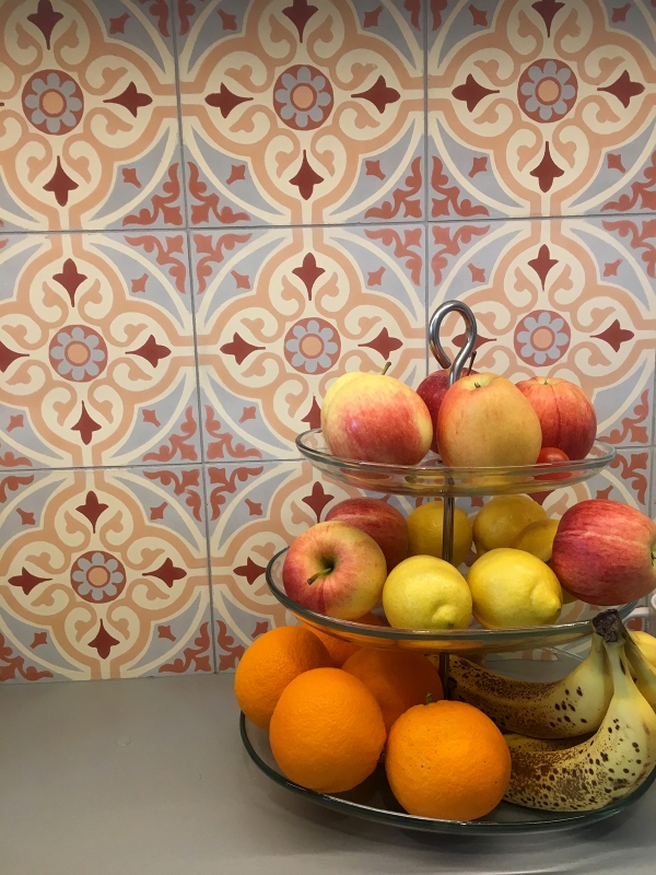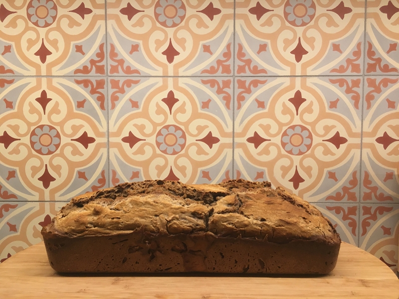 Chleb i płytki cementowe 4800 na kuchennej ścianie