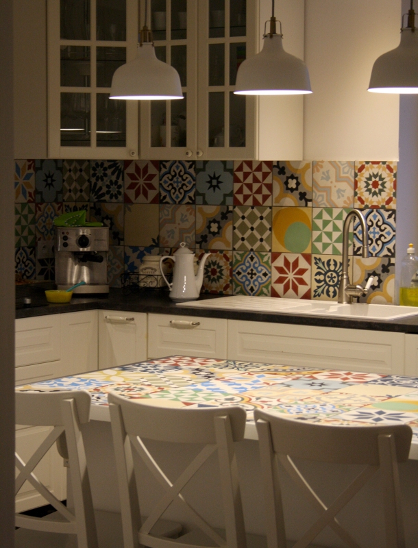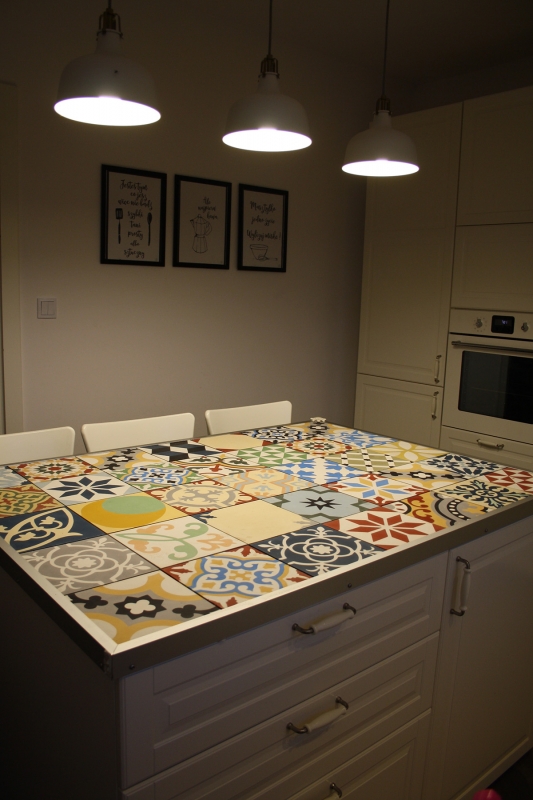 Płytki Patchwork na kuchennej wyspie